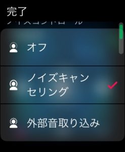 ”ノイズキャンセリング”と”外部音取り込み”、Siriの起動だけ。 Apple Watchからですと、これに加えて”オフ”を選択することが出来ます。