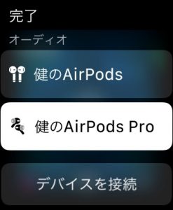 この画像では、AirPodsが出てきていますが、他にBluetoothスピーカーなどがあれば、それも選択できます。