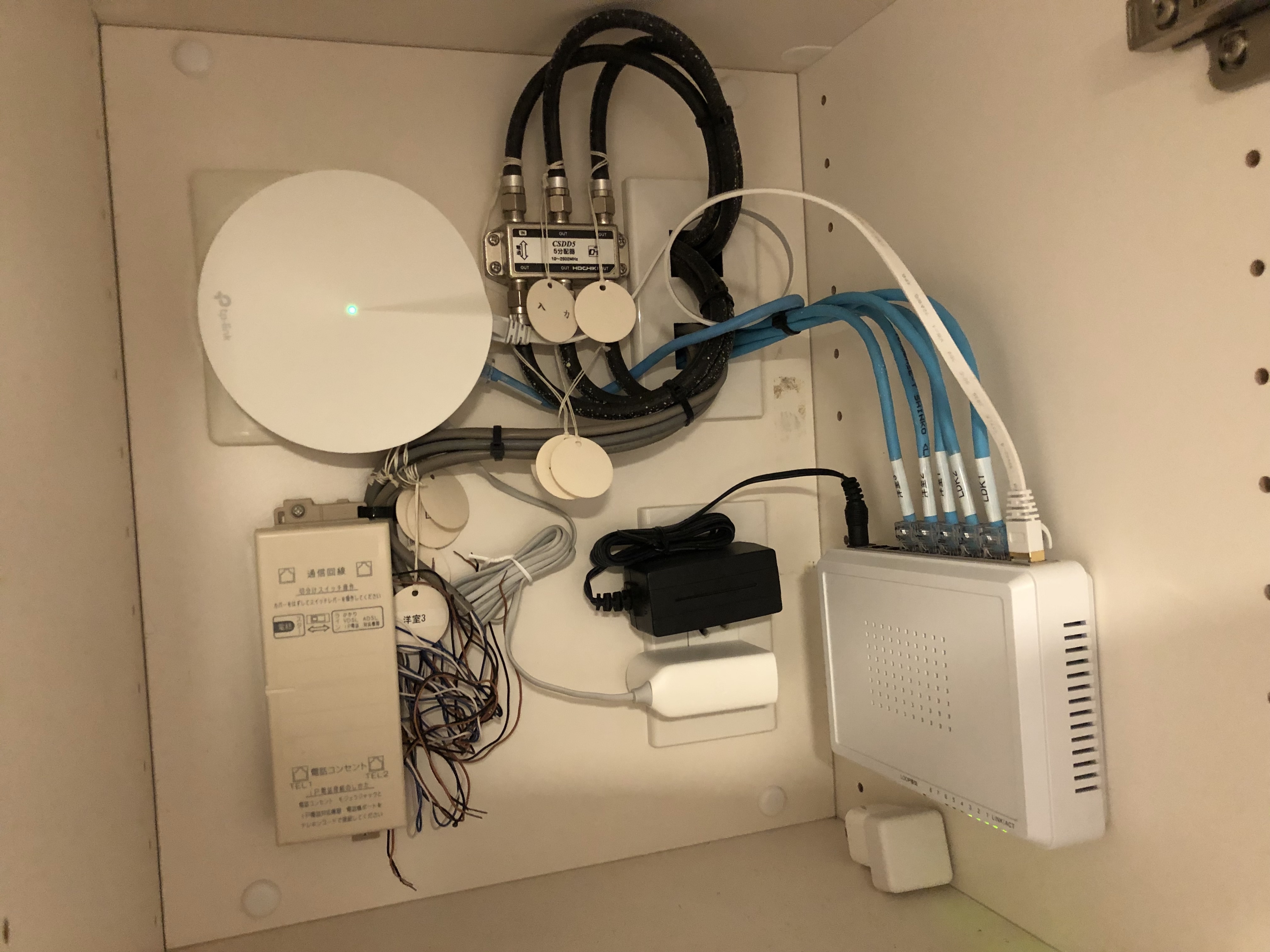 この場所は、実は下駄箱の一部なのですが、配線をコードの裏側に回したら、ちょうど良い感じに収まってくれました。
