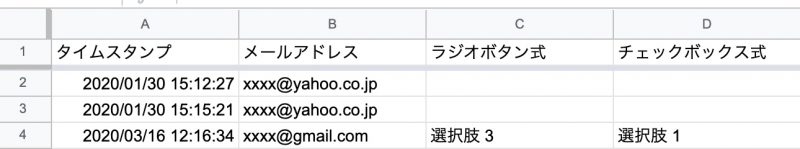 Googleフォームからのデータは、スプレッドシートに新しい行を挿入する形で追記されていくから、スプレッドシート上で参照するときはタイトル行も範囲指定するようにすると解決できるぞ!