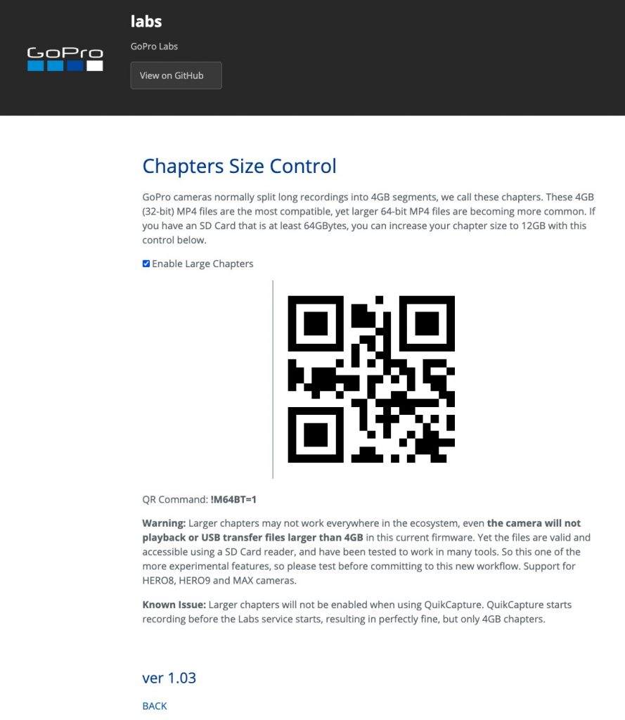 ベータ的な扱いのようなので、しっかりテストを行った上で自己責任でお願いします。 4GBを超えるファイルは、2021年1月現在GoPro本体では再生できないと注意書きがあります。