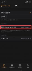 方法は、 同期したいフォルダをiCloud共有アルバムに作成し、 iPhoneのApple Watchアプリで、その共有アルバムを指定する。 これだけです。 以下の画像は、Apple Watchアプリの該当する画面のスクリーンショットです。 iPhoneのWatchアプリのホーム画面から「写真」の項目をタップ 写真の項目内で、同期されているアプリを選択できます。 私は、Apple Watch用の共有アルバムを「Apple Watch」という名前で作っています。 同期されているアルバムをタップすると、iPhoneの写真アプリ上で表示されているアプリ一覧が表示されますので、選んで下さい。