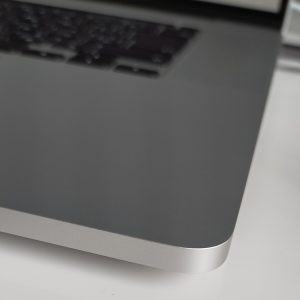Macbook Pro 16インチの角はこんな感じ↓ なので、ケースの角からMacbook Proの角までには隙間ができて、生地の強さもあって空間を保ってくれそうです。