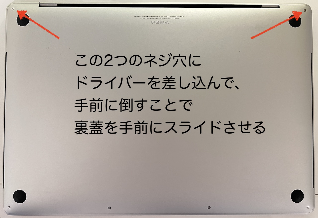 MacBook Pro分解動画では、うまく蓋を外せなかった