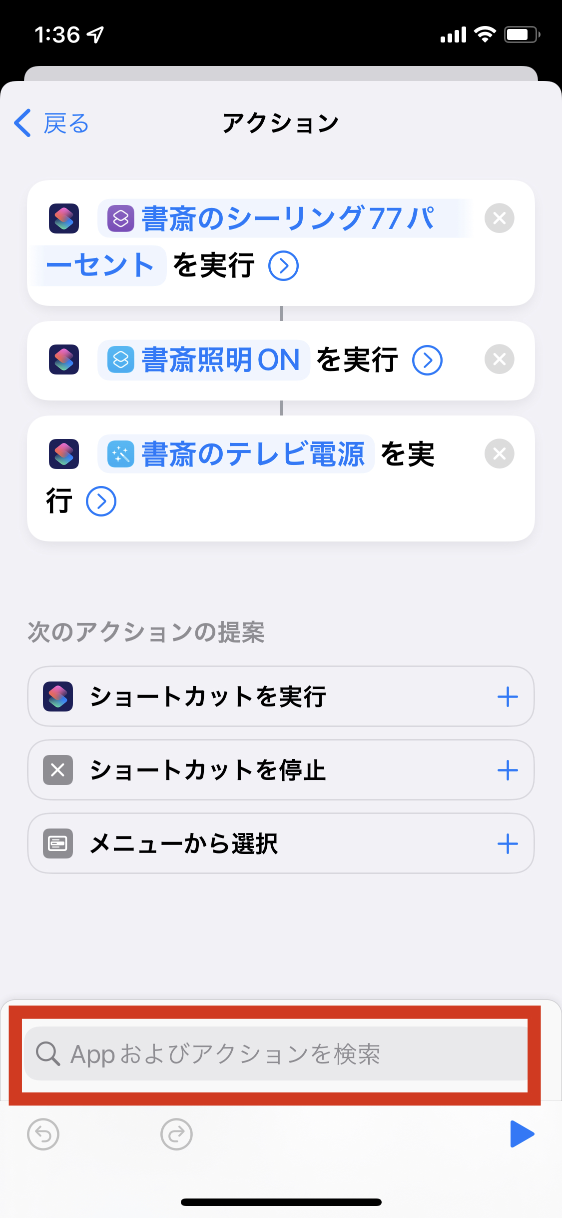 オートメーションの中で、マイショートカットを使う方法