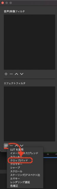 2.映像キャプチャデバイスに、クロップ/パッドのフィルタを設定