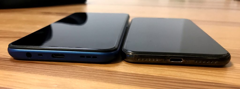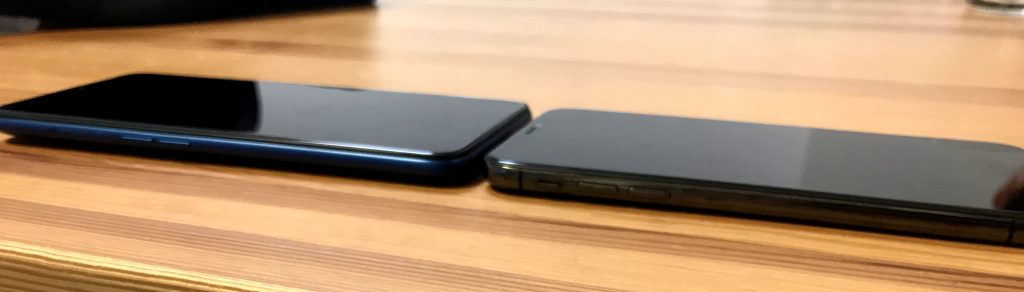 左側面 右側面 下側 上を撮影するのを忘れました。上側はなにもなく、 下側は、ヘッドホンジャックと、USB Type-Cがあります。写真では見えにくいですが。。。 上から iPhone Xはこんな感じ。