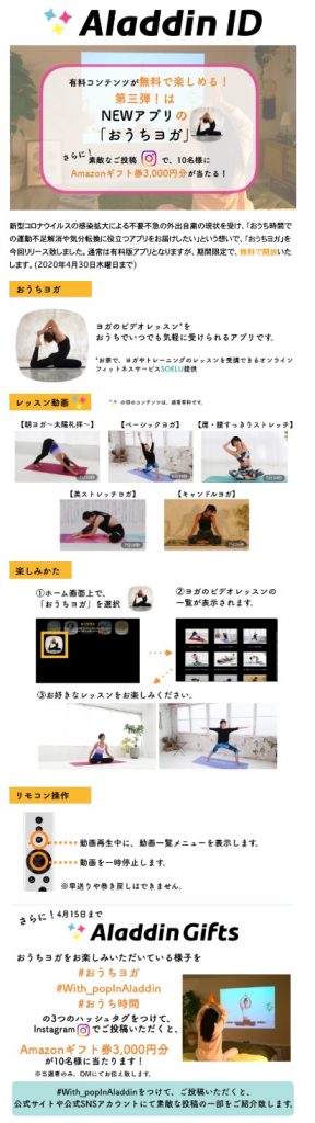 ヨガは、アプリのサービスとして提供されるようです。 またWebにリリースがなく、メルマガのみでしたので、メルマガのキャプチャを載せておきます。