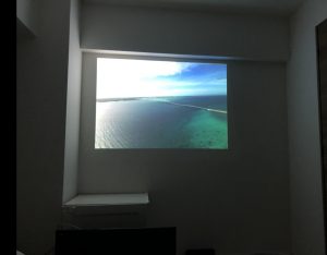 このような梁の多い部屋でもキレイにプロジェクションできました。