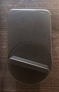 こちらもすごく設定が簡単。 以下の写真に写っている小さな消しゴムのようなもの(3センチ角くらい)を、電源にUSB経由でつなぎます。 スマホ側で宅内の2.4GのWi-Fiネットワークに接続すると、先程セサミ本体で接続したアプリ上で設定ができるようになります。 Wi-Fiのセットアップ画面が、ちゃんと説明書に書いてあったのですが、少し探すのに手間取ったので、スクリーンショットを載せておきます。 Bluetoothで設定した鍵の画面を、左にスワイプすると同じような画面が出てきます。 そこで新たにWi-Fi経由での鍵の設定を行います。