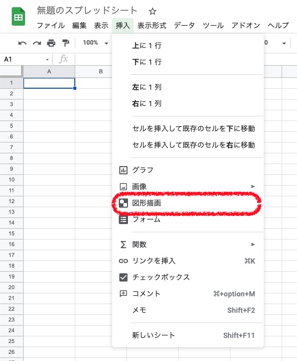 Googleスプレッドシートでの図形描画は専用のモードを使う