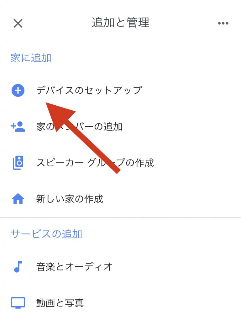 追加と管理の画面で”デバイスのセットアップ”をクリック