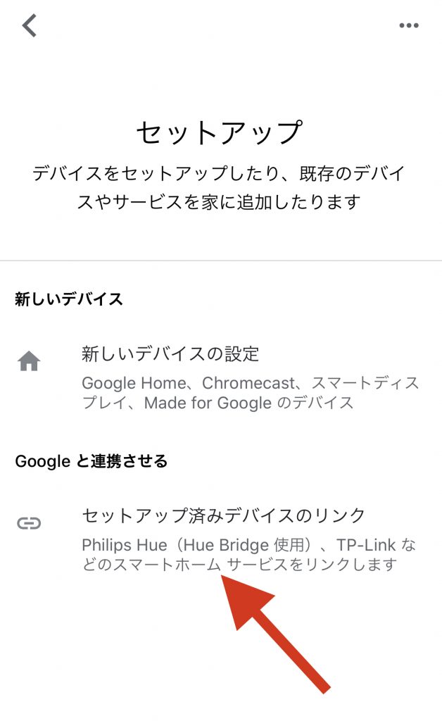 Google Homeとの連携の手順です。 Google Homeアプリを開いて左上の+マークをクリック