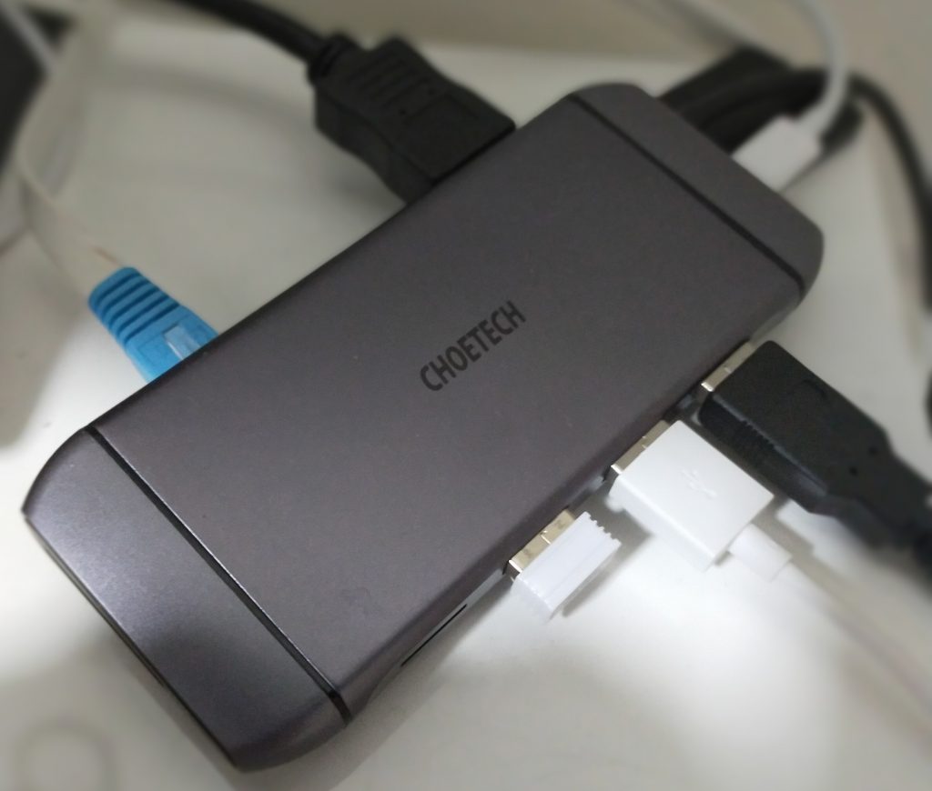 USB Type-C ハブは、星の数ほどありますが、購入したCHOETECHのハブの機能一覧 有線LAN 4K HDMI 100W充電対応PDポート USB3.0 ×3ポートに加えて、 VGA SDカードリーダー Micro SDカードリーダーも付いてます。 2020年9月現在4,000円程で購入できます。 リンク