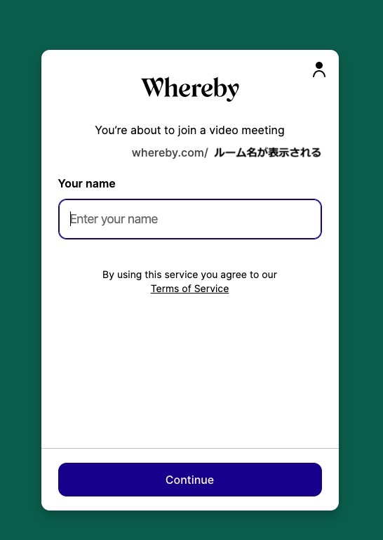 Wherebyは、ホストとなる人が部屋を作り、そのURLを参加者に教えることでブラウザベースで、ビデオ会議をスタートできます。 URLは、https://whereby.com/XXXといった簡単なものです。 説明するまでもない位簡単なのですが、項目を書いておきます。