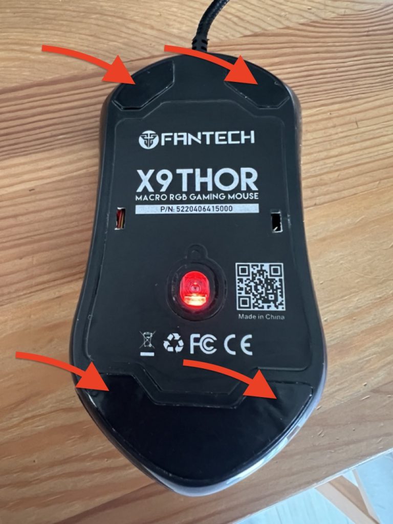 スクロールホイールの回りが悪くなってしまった。。 上に回すときはスムーズだけど、下に回すときに重くなってしまう。 X9THORってゲーミングマウスなのに、これじゃゲームもままならないのでは?? マウスはネジ穴がシールの裏側に隠されているので、分解方法を教えるぞ。 X9THORはシールを破かないように気をつけて作業するのがおすすめじゃ。 ## X9THOR分解方法 X9THORのネジはマウスの裏側、上下の左右に4つ付いていて、4つとも普通の十字ネジ。 その場所は、他の場所よりも少し高くなるようにシールというよりも滑りやすい素材が両面テープで貼り付けてあるから、この素材を切らないように横からカッターで剥がすようにしよう。 ※筆者はマウス真ん中の左右に窪みを見つけてしカッターで穴を開けてしまったが、ここは不要。。 ![](/assets/images/2024/06/X9THOR-FANNTECH-768x1024.jpeg) ## スクロールホイールの回りが悪くなっていた原因 ゴミが詰まっているのかと想像していたものの中は至って綺麗で、原因はコードがスクロールホイールに当たっていたこと。。なんと。。あまりにシンプルな原因で拍子抜けしてしまいました。 ## 解決方法 写真を撮り損ねてしまったけれど、コードを回転させて逆さまに取り付けて、またホイールにぶつからないように奥に押し込むだけで、問題解決! あとは蓋をしてネジを回して、剥がしてあったシートを元通りにするだけでした。シートは全部剥がさずに、ネジを回せる分だけ剥がしておいて、両面テープもそのまま残しておいたので、特に両面テープを貼り直す必要もなく、そのままくっつけ直してしまいました。 分解方法を調べるのに5分くらいかかってしまいましたが、実際に分解方法が分かってからは5分弱で作業が終わってしまいました。 もしX9THORのホイールの回転が悪くなってしまったら、分解してみてください。 蓋にコードが繋がっているなどの複雑な構造ではなかったので、分解はしやすいと思います。