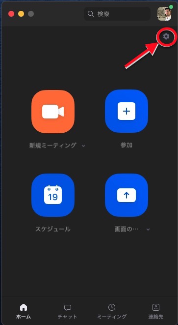 Zoomアプリのホーム画面右上から設定画面へ