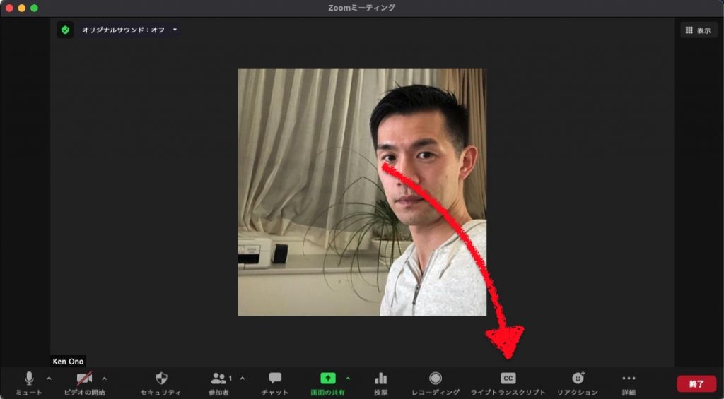 注意 先にご紹介したZoomのライブトランスクリプト機能をマイページからオフにしておく必要があります。 ※管理画面>設定>ミーティング(詳細)>字幕機能 から設定できます。