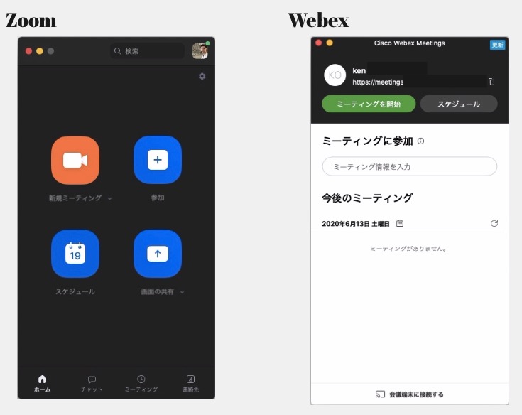 起動画面から、順番にZoomとWebexの画面をご紹介します。比較しながら見てみて下さい。